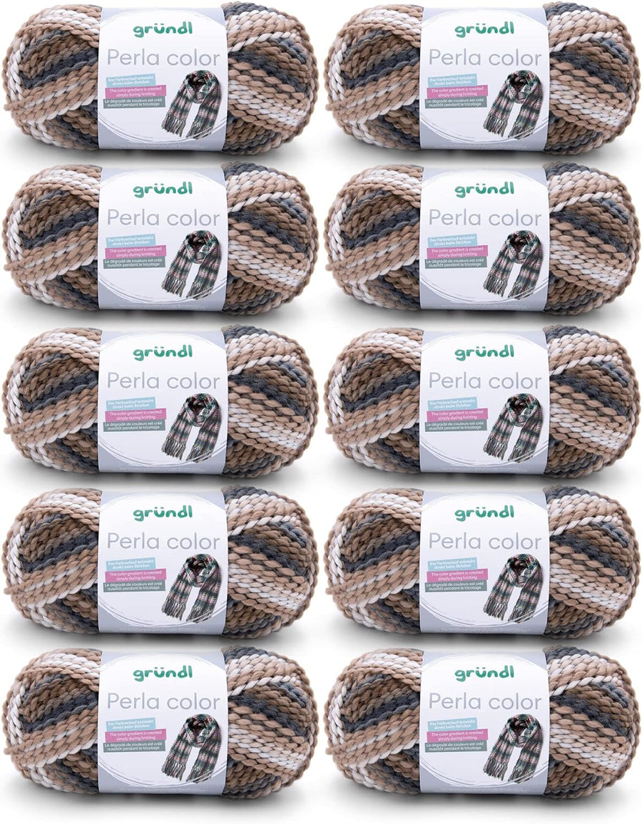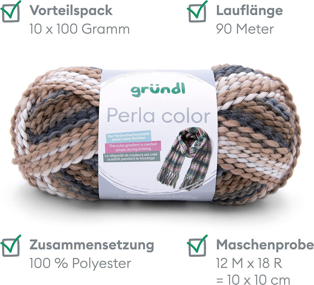 Gründl 3354-26 Perla Color Wolle, 100% Polyester, schierfergrau-karamell-weiss multicolor, 39 x 20 x