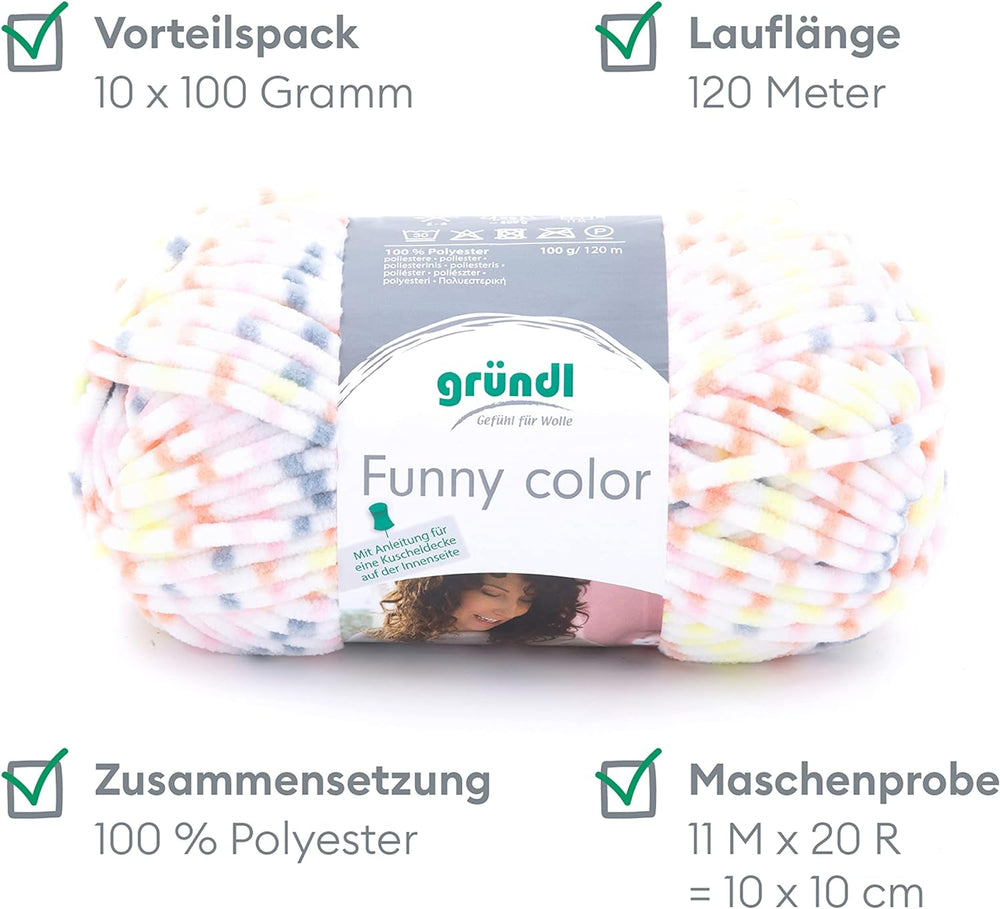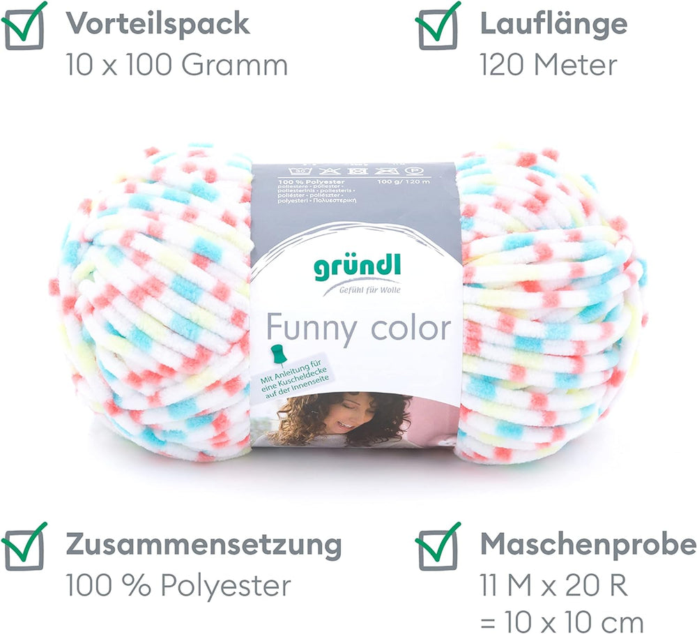 Gründl Funny color (Samtartiges Chenille Strick- & Häkelgarn aus 100 % Polyester, 100 g / 120 m, Nad