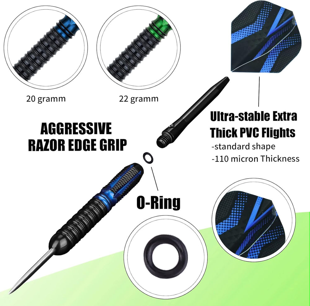 Grebarley Dartpfeile mit Metallspitze,12 Stück Profi Steeldarts 18 Aluminium Schaft mit 9 Flights 20
