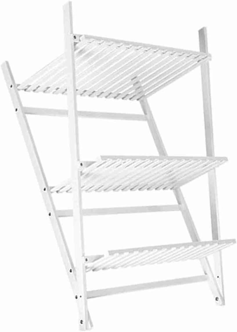 Greensen Klappbar Pflanzenleiter Weiss 3 Etagen Blumenständer Holz Pflanzenständer Lagerregal, Indoo