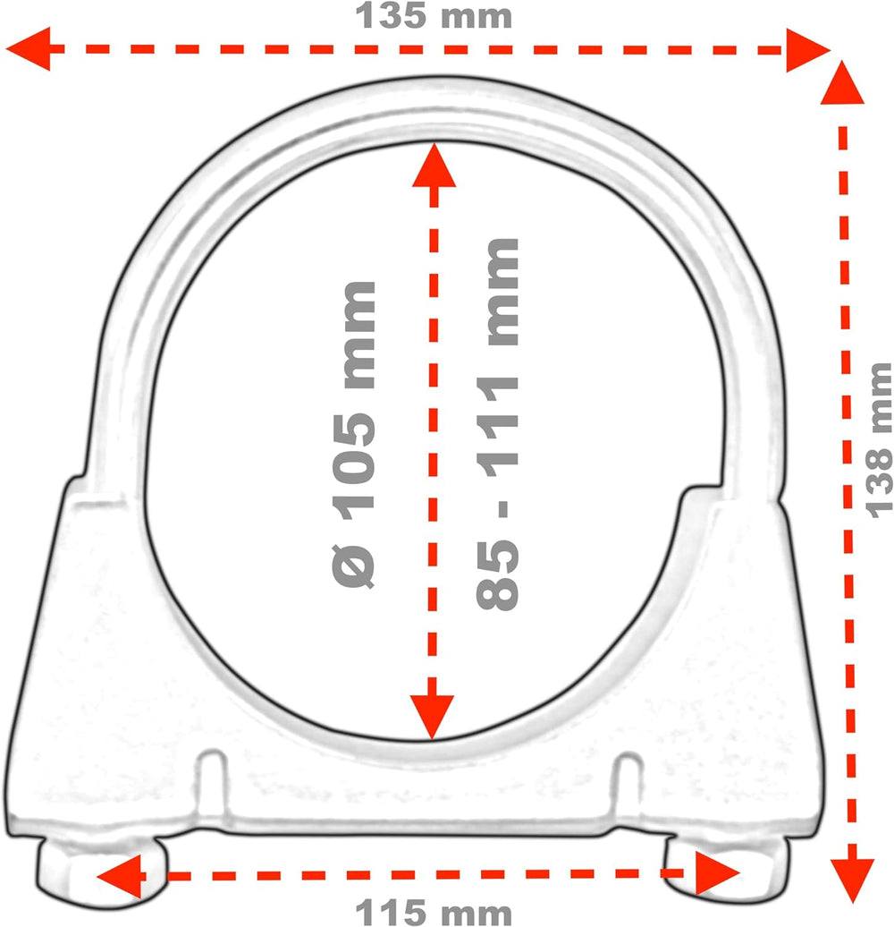 4er Set U Bügel Rohrschellen M8 x 105mm extrem belastbare Montageschellen aus verzinktem Stahl (4 St