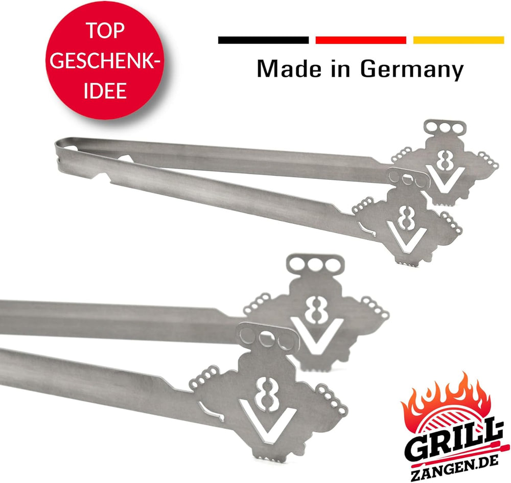 Grillzange Motiv V8 Motor, spülmaschinengeeignet, Geschenkidee, Männergeschenk, US-Car, Grillgeschen