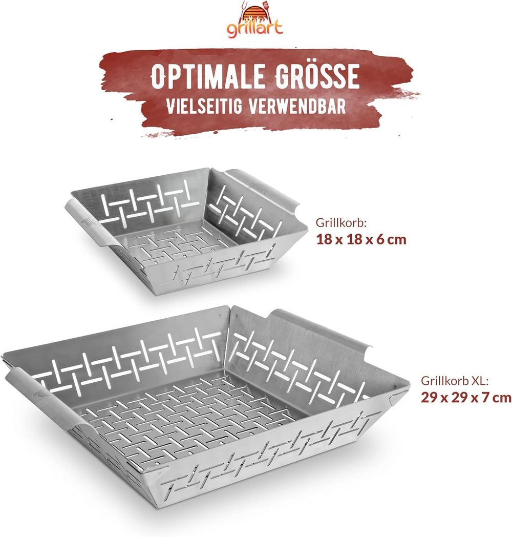 grillart® Premium Grillkorb + XL Grillkorb Edelstahl, Fisch Grillkorb und Grillschale verwendbar – u
