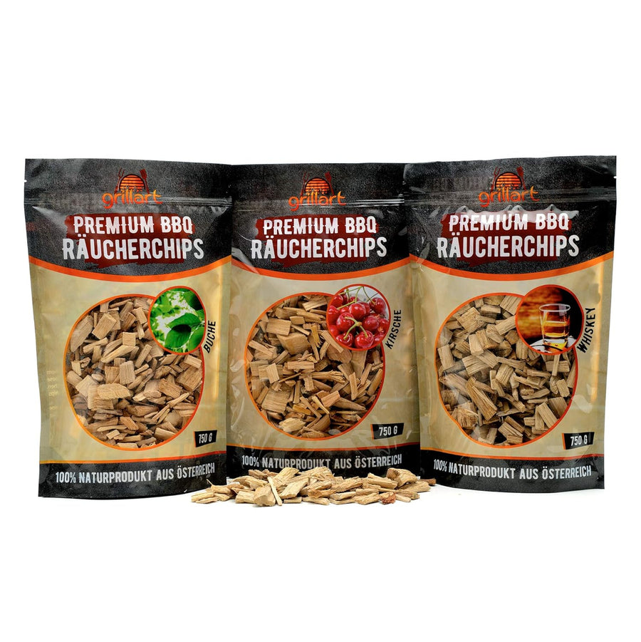 grillart® Premium BBQ Räucherchips XL Mix 3er Set für das besondere Raucharoma – sehr rauchaktives R