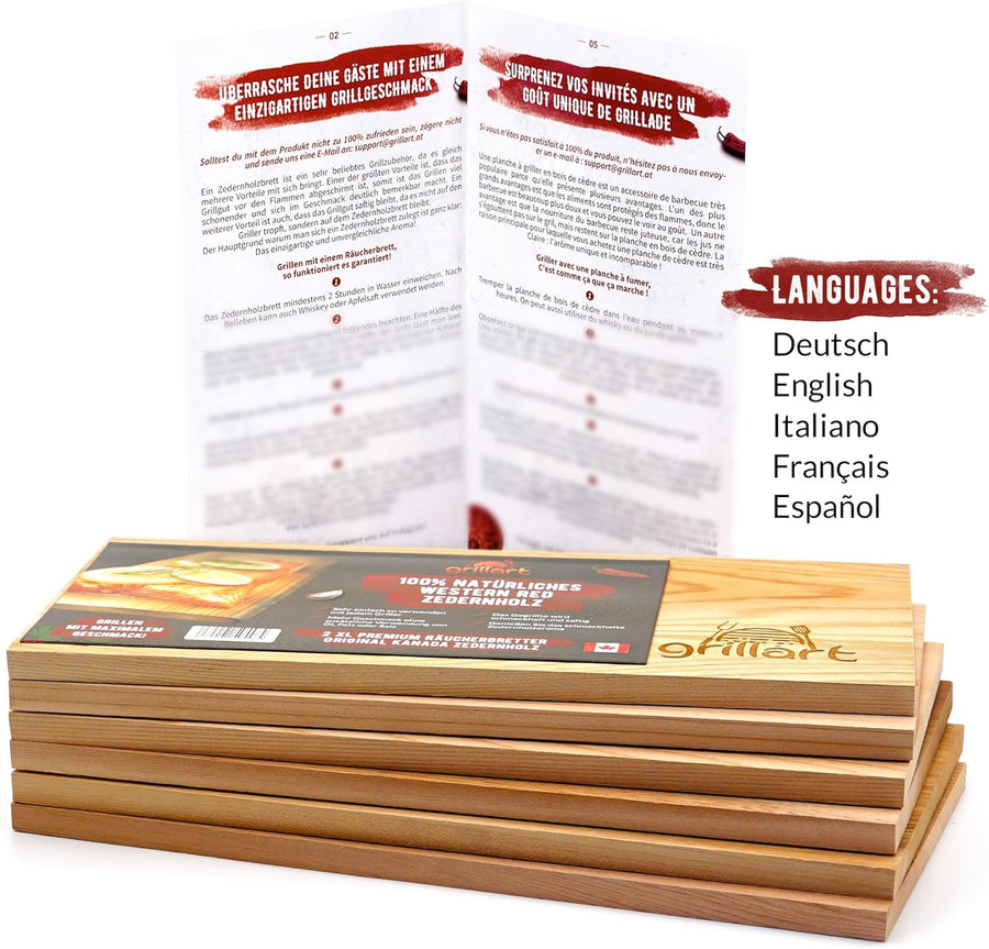 6 Pack XL Grillbretter - Zedernholzbrett zum Grillen - Räucherbretter aus Zedernholz von grillart® h