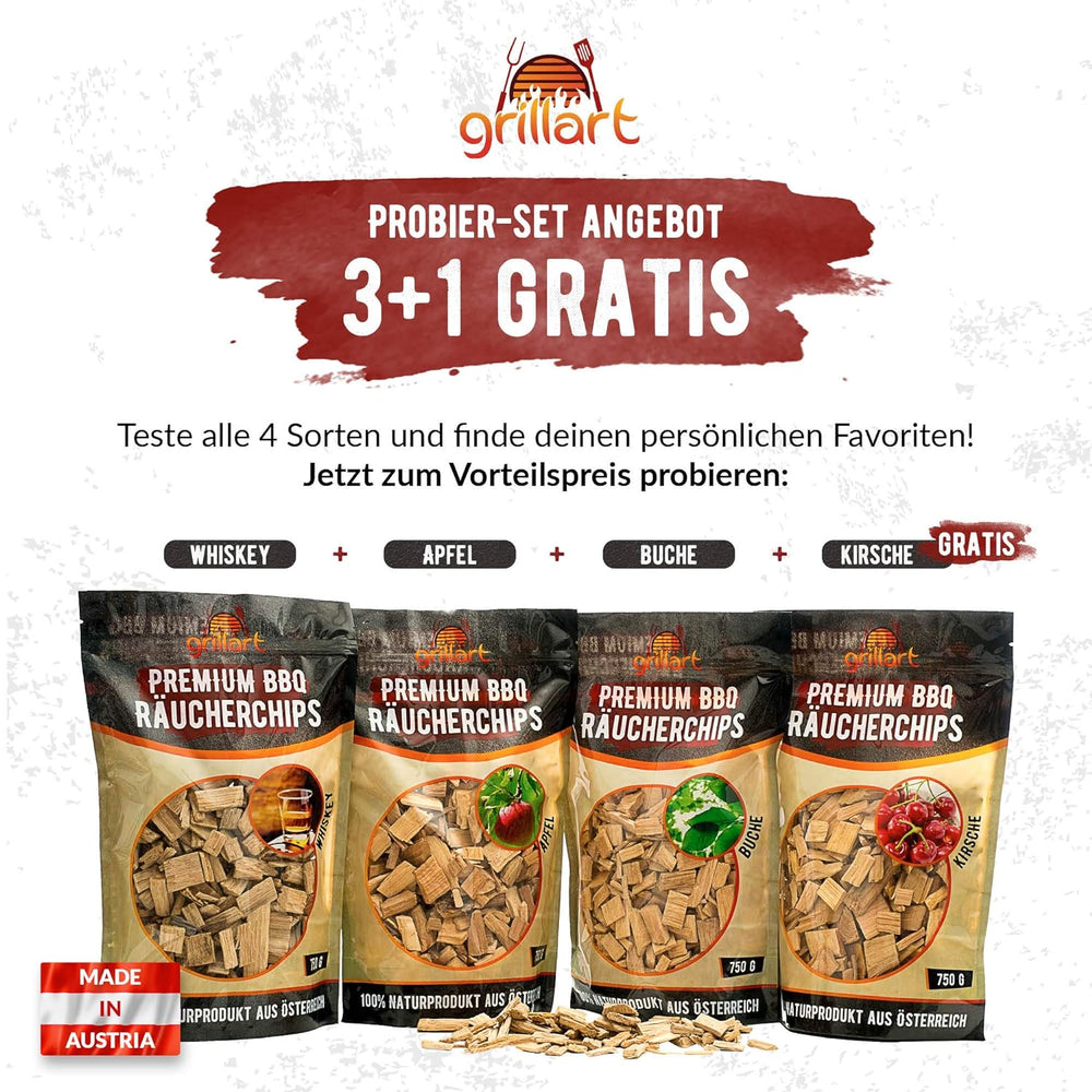 grillart® Premium BBQ Räucherchips Mix 4er XL Set für das besondere Raucharoma – sehr rauchaktives R