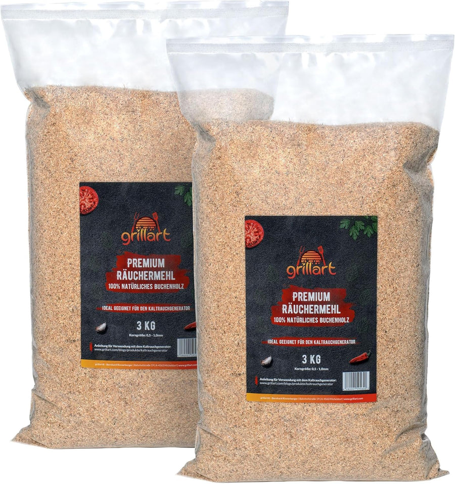 grillart Premium Räuchermehl Buche - 3KG - ideal zum Kalträuchern geeignet - 100% natürliches Buchen