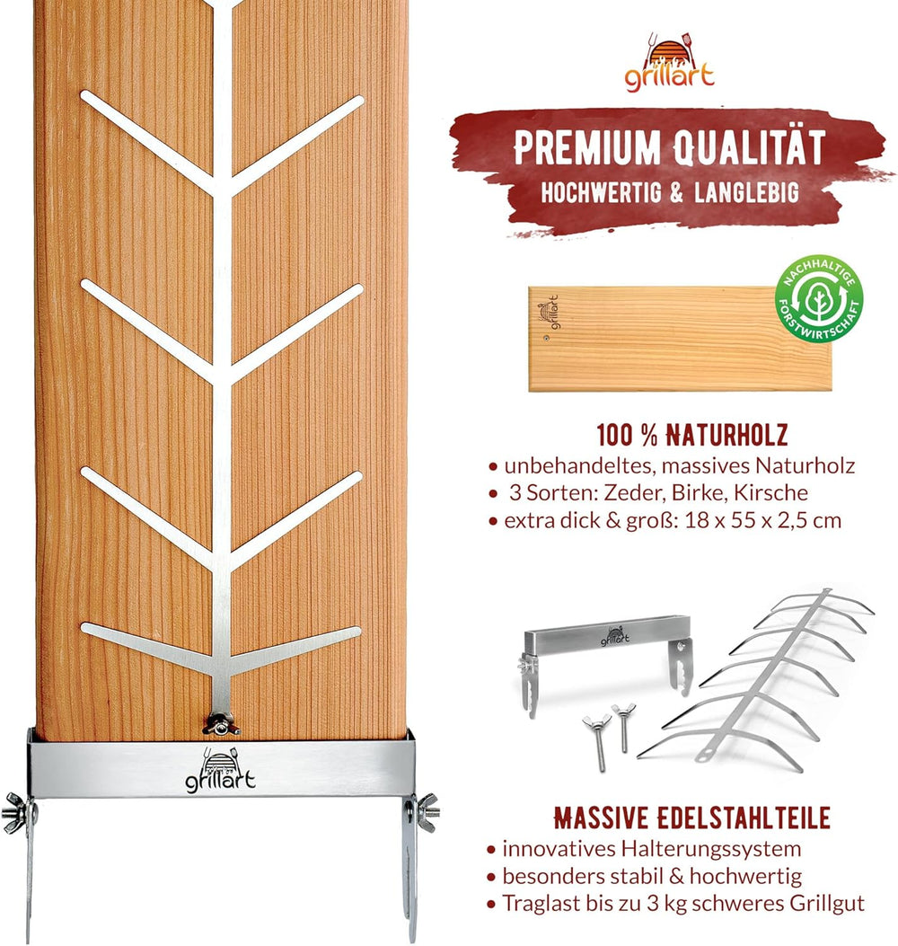 grillart® Premium Räucherbretter aus Zedernholz mit hochwertigem Edelstahlrahmen für eine einfache H
