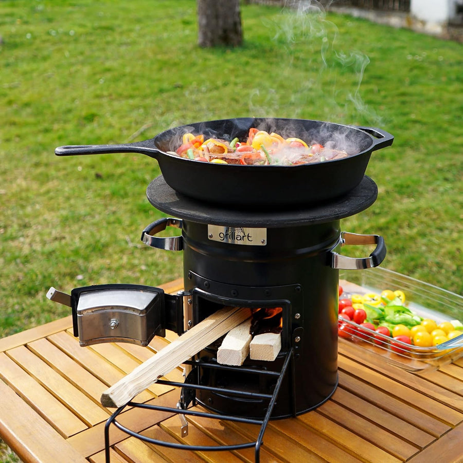 grillart® Raketenofen Outdoor “Powertrain” schwarz – effizienter Holzofen als Campingkocher für Dutc