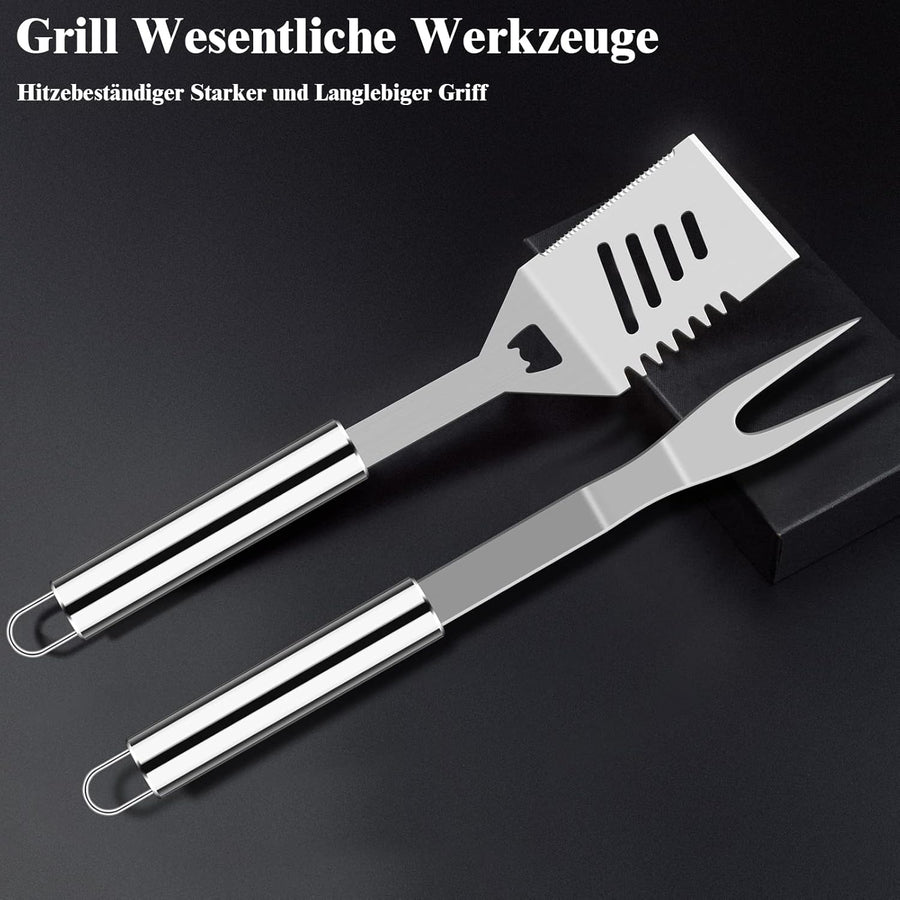 Grilliance BBQ Grillbesteck Set 30 Grillzubehör aus Hochwertiger Edelstahl Grillzange Grillspachtel