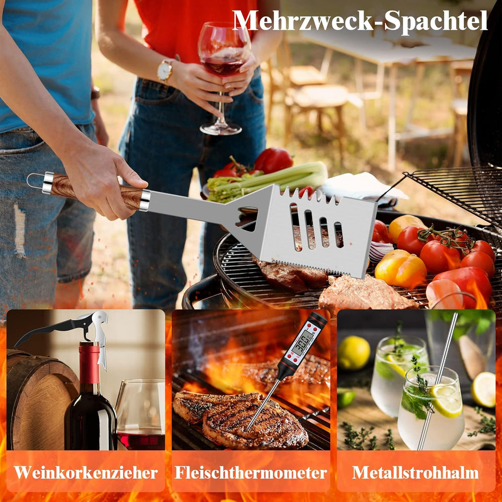 Grilliance 38 Stücke BBQ Grillbesteck Set Edelstahl Grillzubehör für Männer Geschenk Geburtstag Hoch