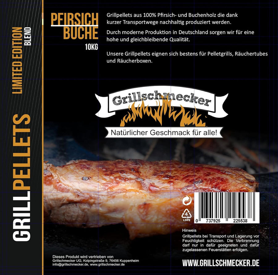 Grillpellets - Holzpellets 10kg aus Pfirsich und Buchenholz Beutel für Grill, Pelletofen & Smoker