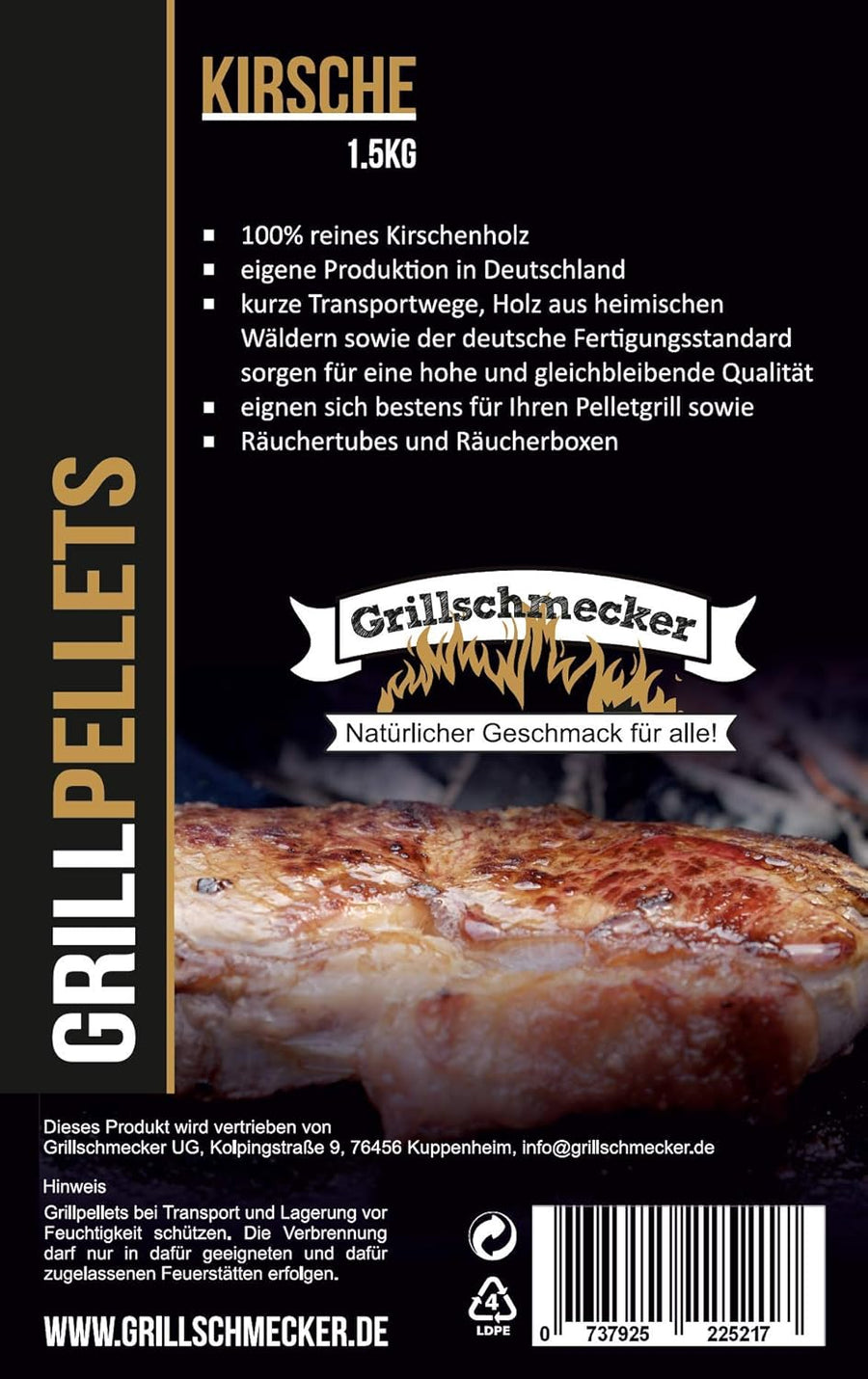 Grillpellets Kirsche 15 kg - Holzpellets aus Kirschholz für Grill, Pelletofen & Smoker