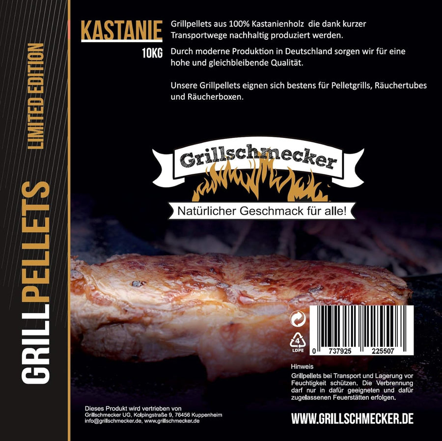 Grillpellets Kastanie 10kg - Holzpellets aus 100% Kastanienholz für Pelletsgrill, Räucherboxen und S