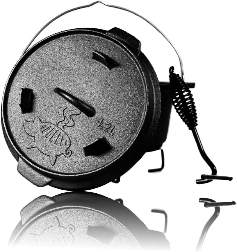 Grillschweine Dutch Oven 4.5QT (4,2 L mit Füsse) - BBQ Schmorofen - Gusseisen Feuertopf, 4,2 L mit F