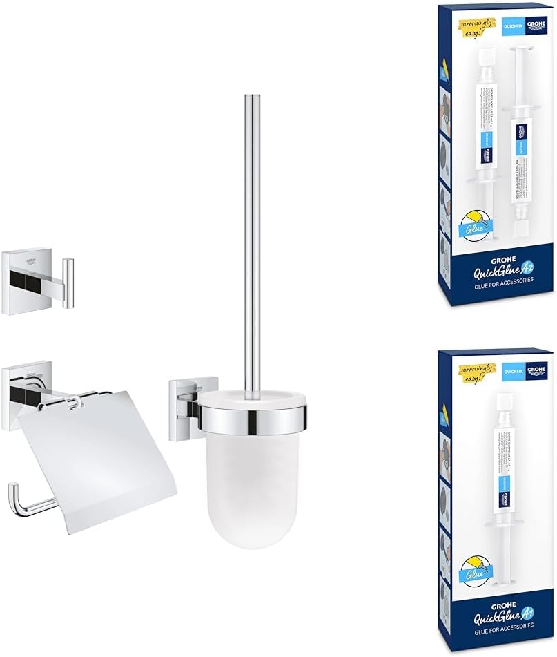 Bundle aus GROHE Start Cube - Badetuchhalter, 41089000 + GROHE QUICKFIX - Kleber- Set für Badaccesso