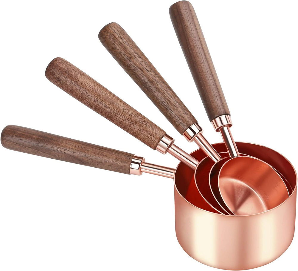 GuDoQi Messlöffel und Messbecher Set, 8 Stück, Premium Edelstahl Spiegel Poliert, 4 Holzgriff Messbe
