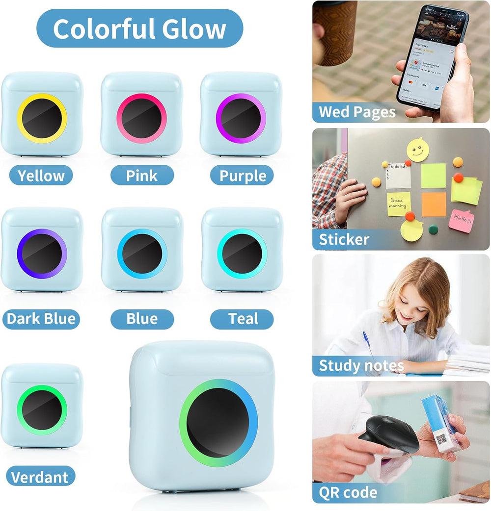 GuKKK Mini Drucker, Mobiler Fotodrucker, Tragbarer Mini Fotodrucker, Wireless Thermodrucker mit 11 R