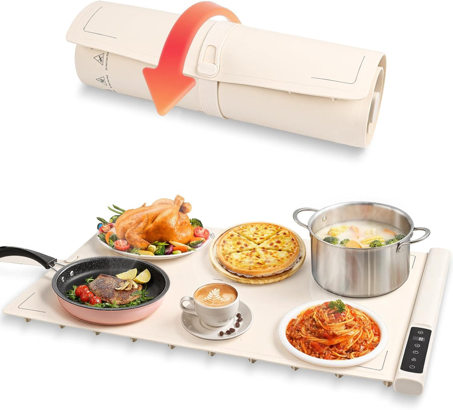 Elektrische Warmhalteplatte für Speisen, GuKKK Faltbare Speisenwärmer mit 4 Einstellbarer Temperatur