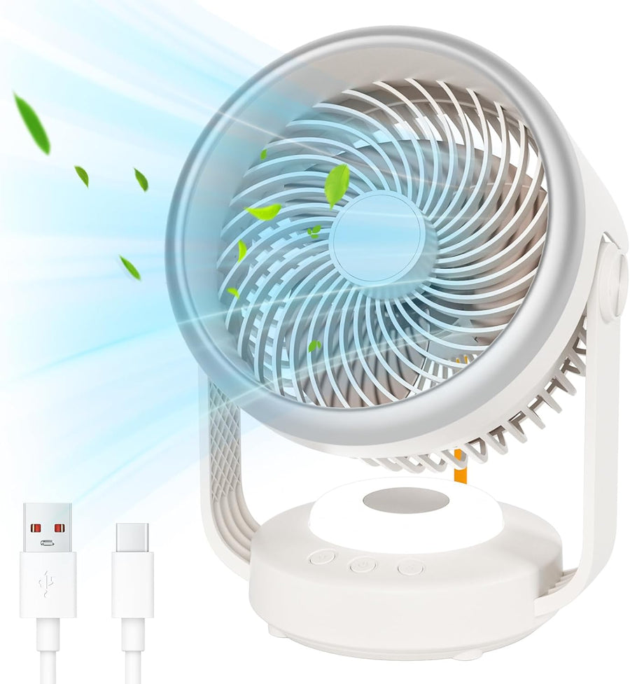 GuKKK Ventilator, Tischventilator Leise 5400mah, Umluftventilator 70° Oszillation mit 4 Geschwindigk