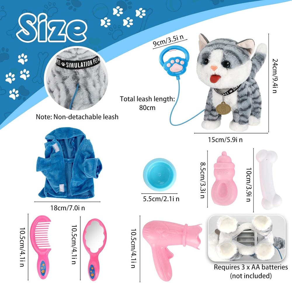 GuKKK Nteraktives Haustier Katze, Spielzeug Katze für Kinder, Katzen Ahre Kuscheltier Spielzeug, mit