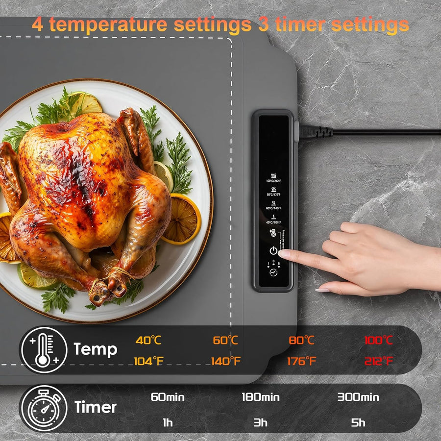 Elektrische Warmhalteplatte für Speisen, GuKKK Faltbare Speisenwärmer mit 9 Einstellbarer Temperatur