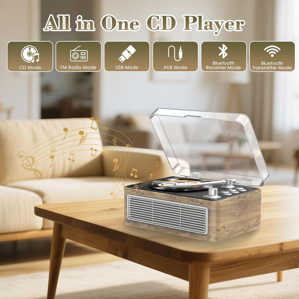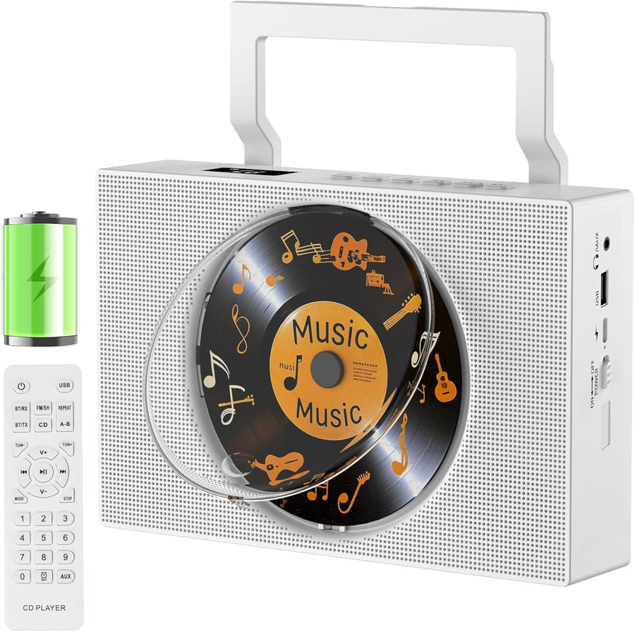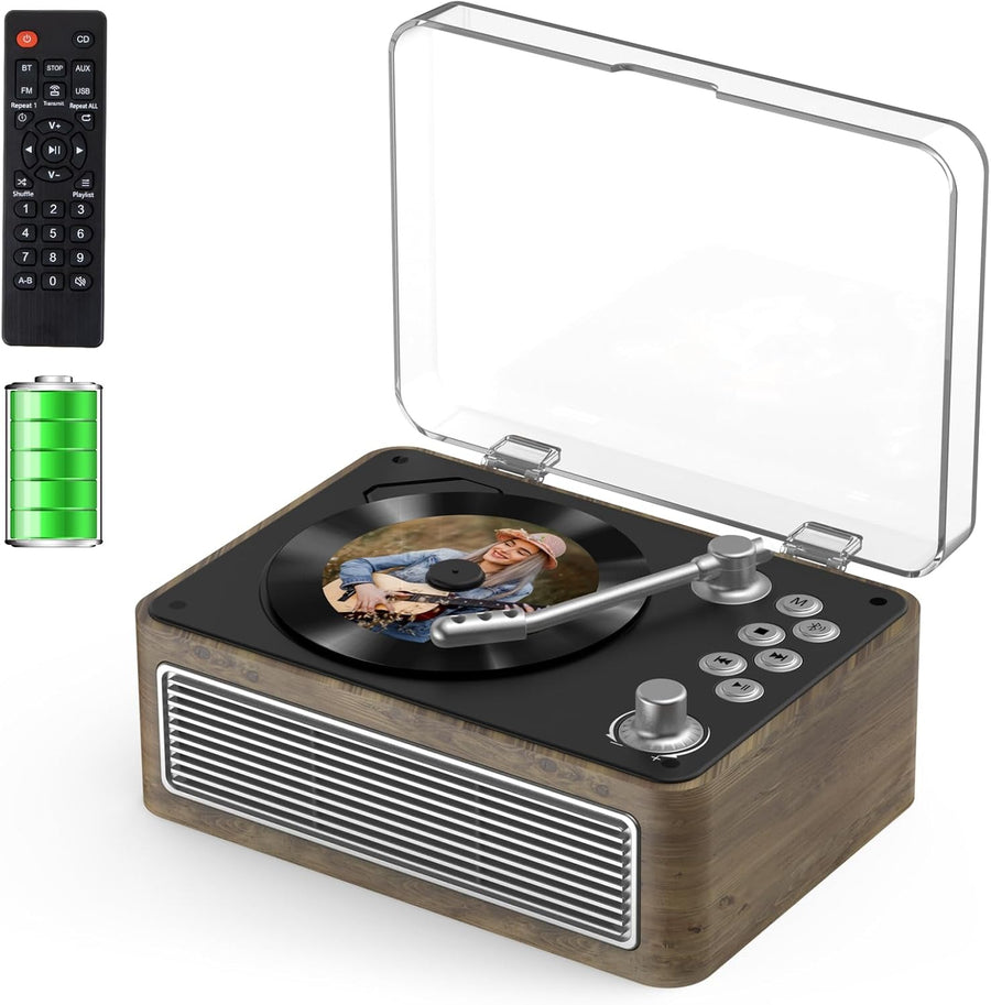 Gueray Tragbarer Bluetooth CD-Player mit Lautsprechern 3600mAh Wiederaufladbarer Vintage CD Spieler