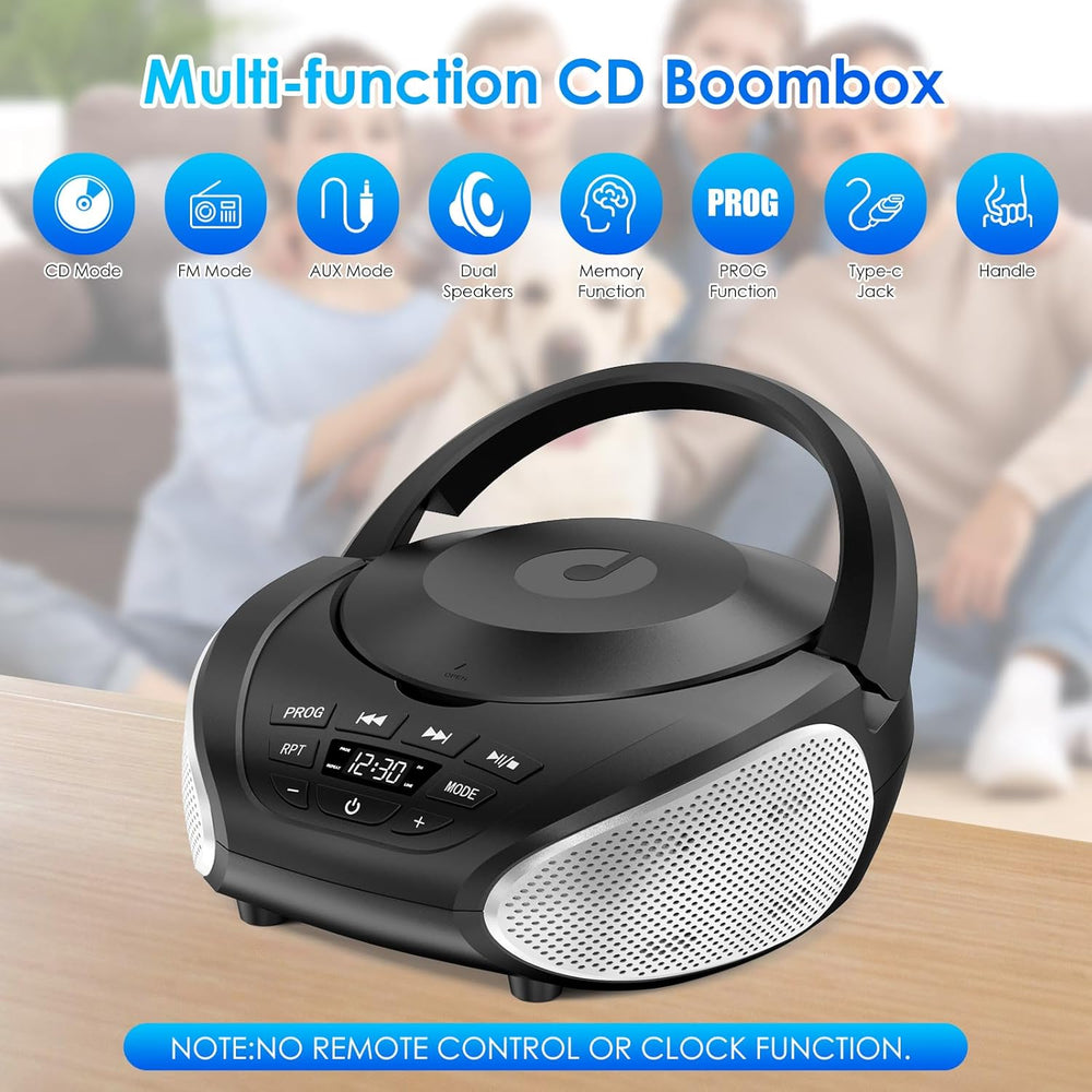 Gueray Tragbarer CD-Player Boombox Kompakt-Radio mit Stereo-Lautsprechern UKW-Radio 3,5-mm-AUX-Einga