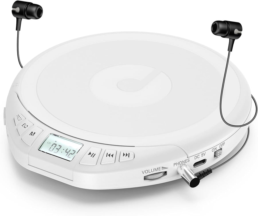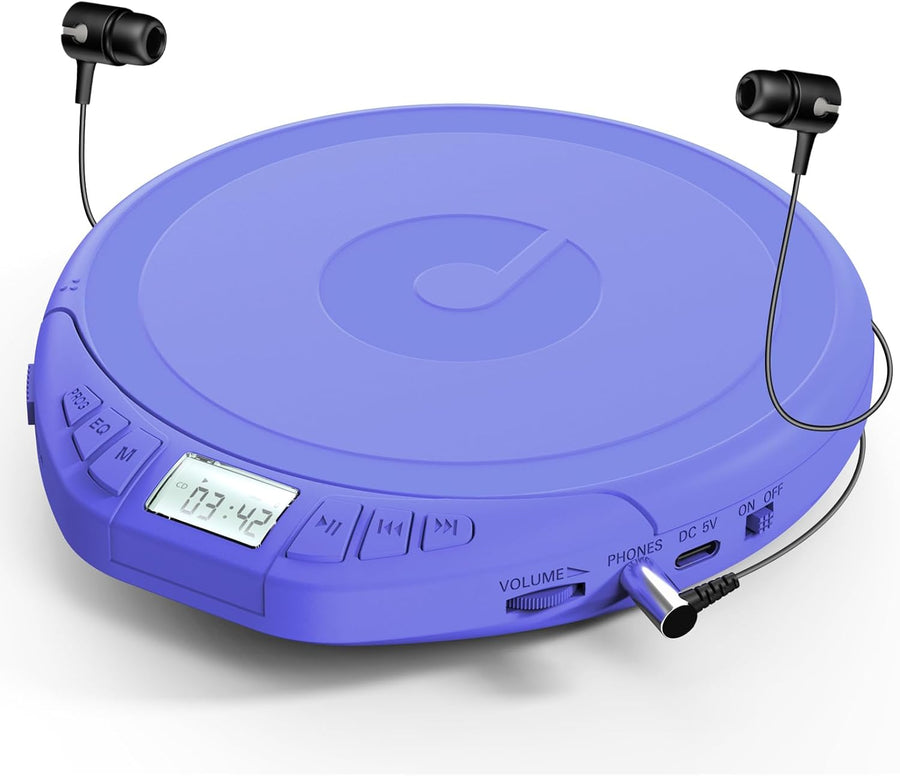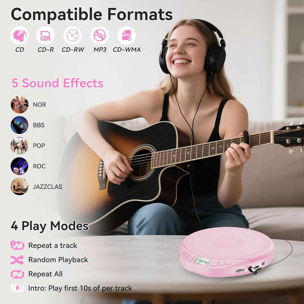 Gueray CD Player Tragbar CD Player Kinder CD Player HiFi Tragbarer CD Player Discman mit Kopfhörer L