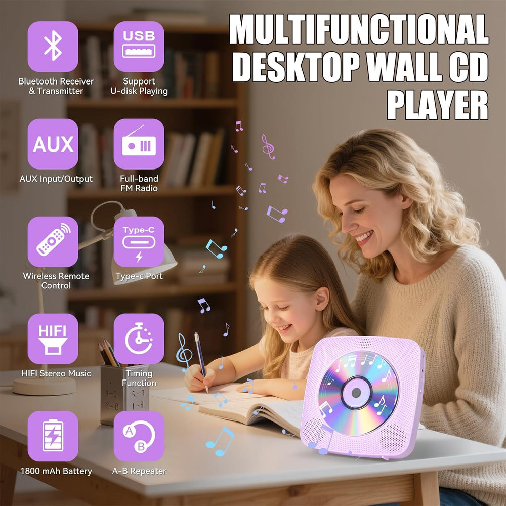 Tragbarer CD Player mit Bluetooth, Gueray Wandmontierbares CD Player Eingebaute HiFi-Lautsprecher mi