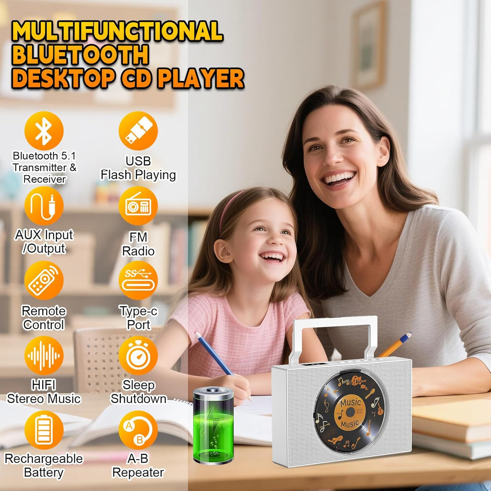 Gueray Desktop CD Player Bluetooth CD-Spieler mit Lautsprechern für Zuhause Tragbarer CD-Player mit