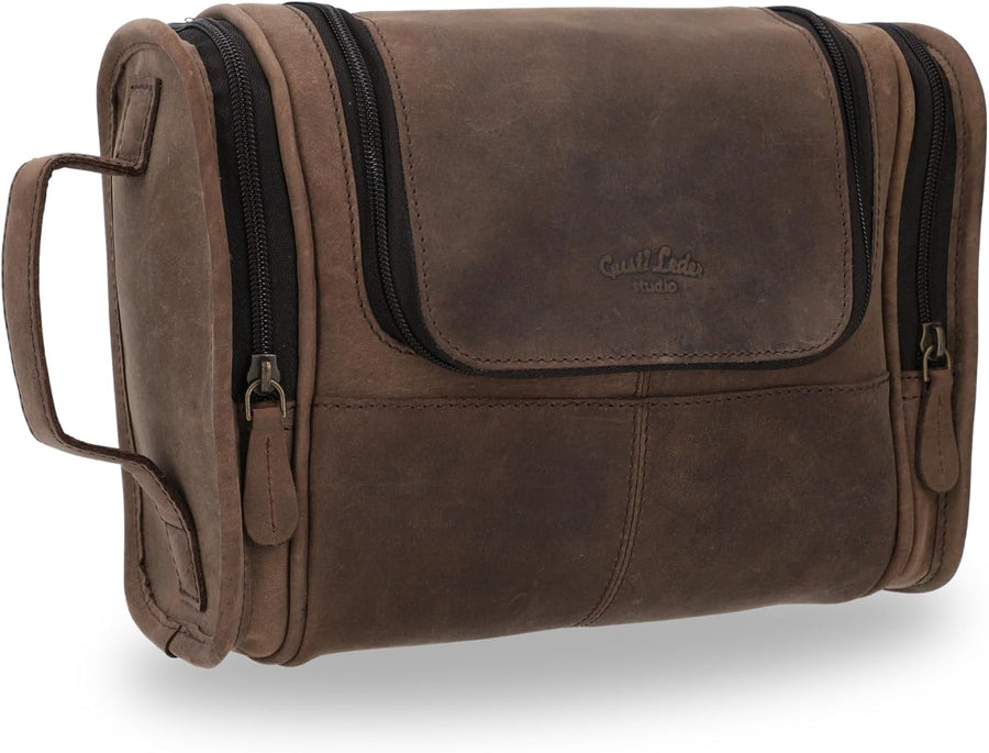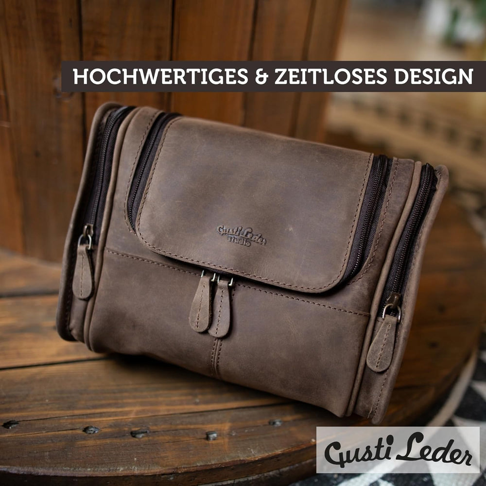 Gusti Kulturbeutel Herren Leder Chester – Edle Kulturtasche aus echtem Büffelleder – Robuste Kosmeti