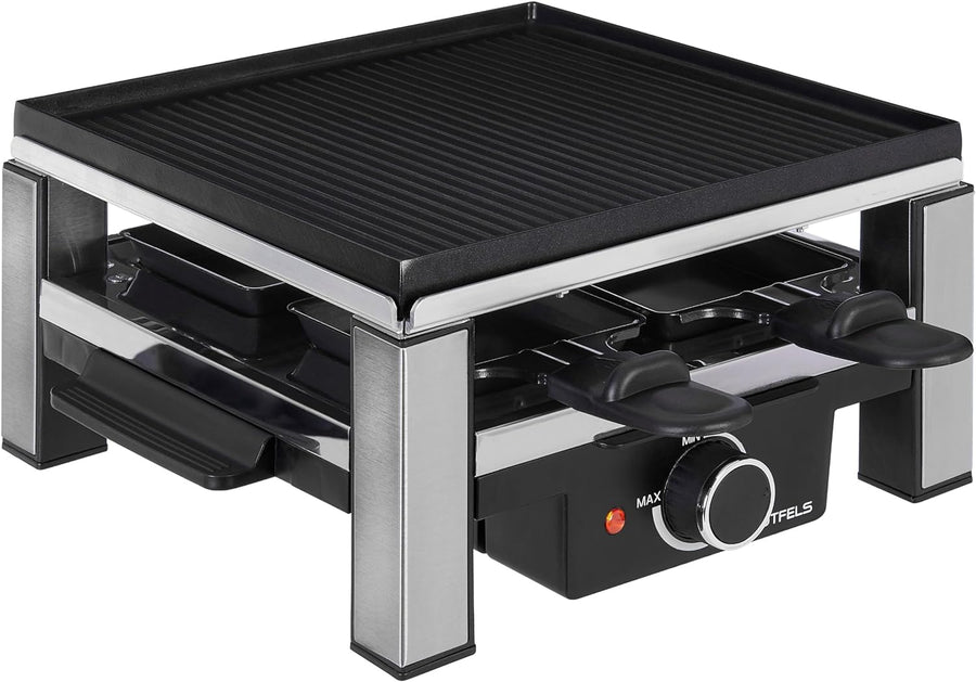 GUTFELS 4-Pfännchen-Raclette RACLETTE 4010 | Für bis zu 4 Personen | Antihaftbeschichtung | Wendepla