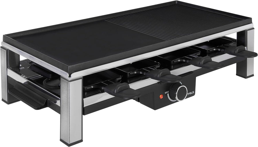 GUTFELS 8-Pfännchen-Raclette RACLETTE 4020 | Für bis zu 8 Personen | Antihaftbeschichtung | Wendepla