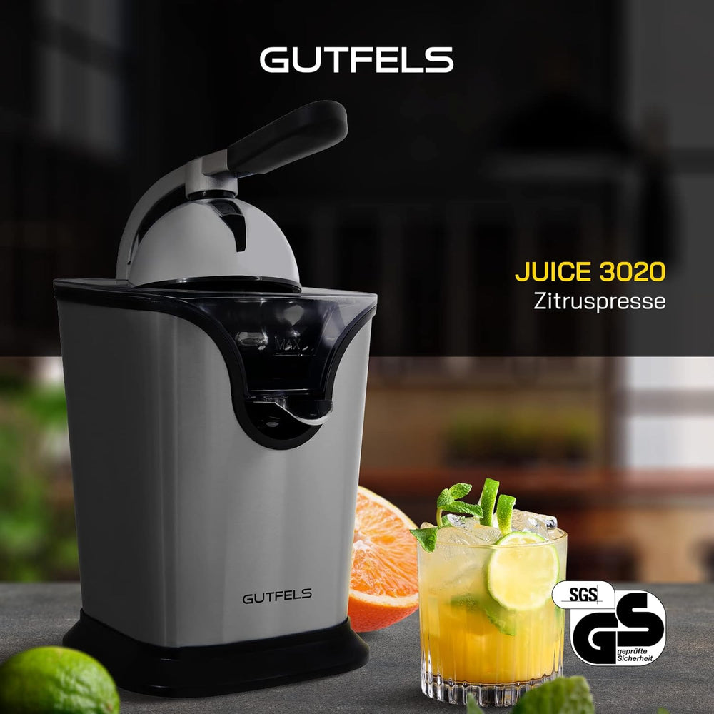 GUTFELS Entsafter JUICE 3010 | 1,6 Liter Tresterbehälter + 500 ml Saftbehälter | 65 mm Öffnung | Ede