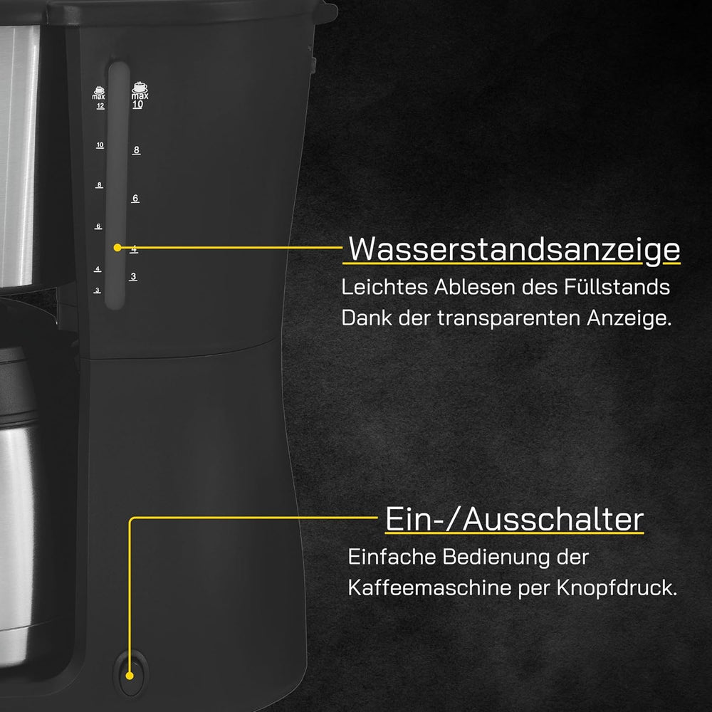 Gutfels Filterkaffemaschine COFFEE 2030 | 1,25 Liter Volumen für max. 12 Tassen | 980 Watt | Thermos