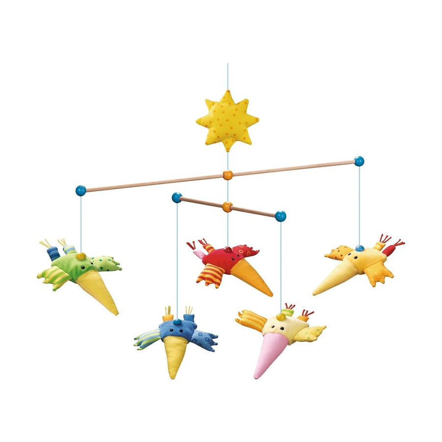 HABA 1103 Mobile Zwitscherlinge, Baby-Mobile zum Aufhängen mit 5 abnehmbaren Vögeln aus Stoff und ge