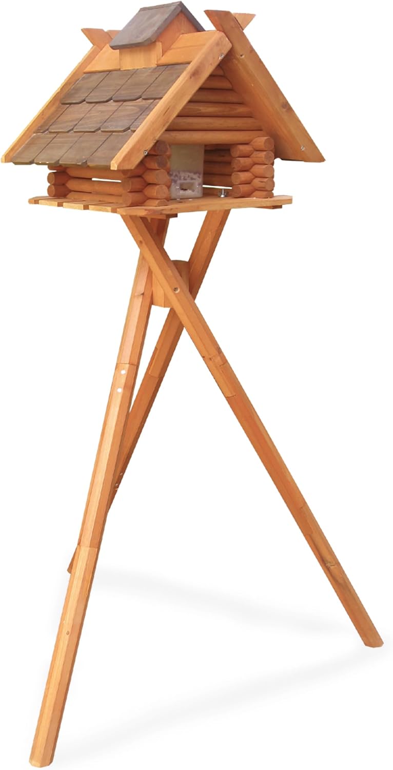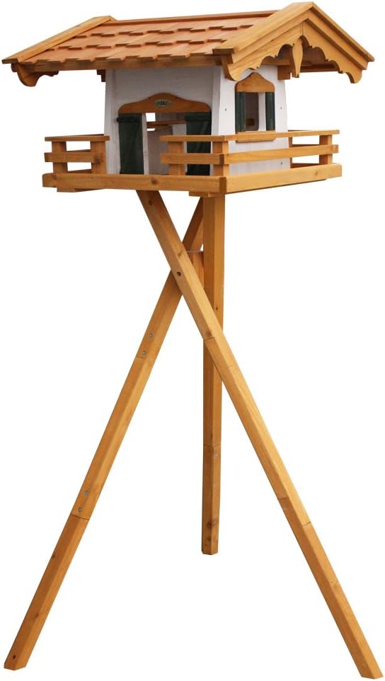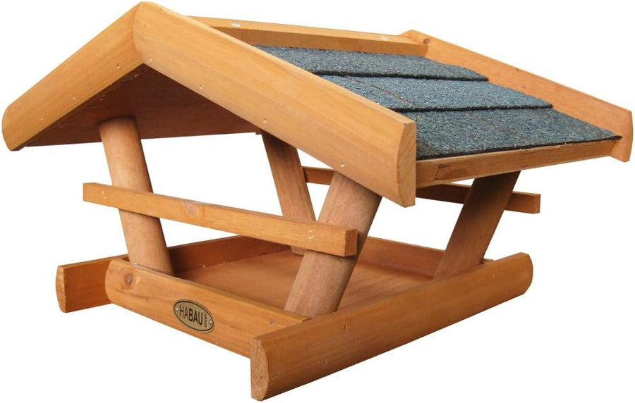 HABAU Vogelhaus Zwergdrossel mit Ständer - Futterhaus aus Holz für Aussen