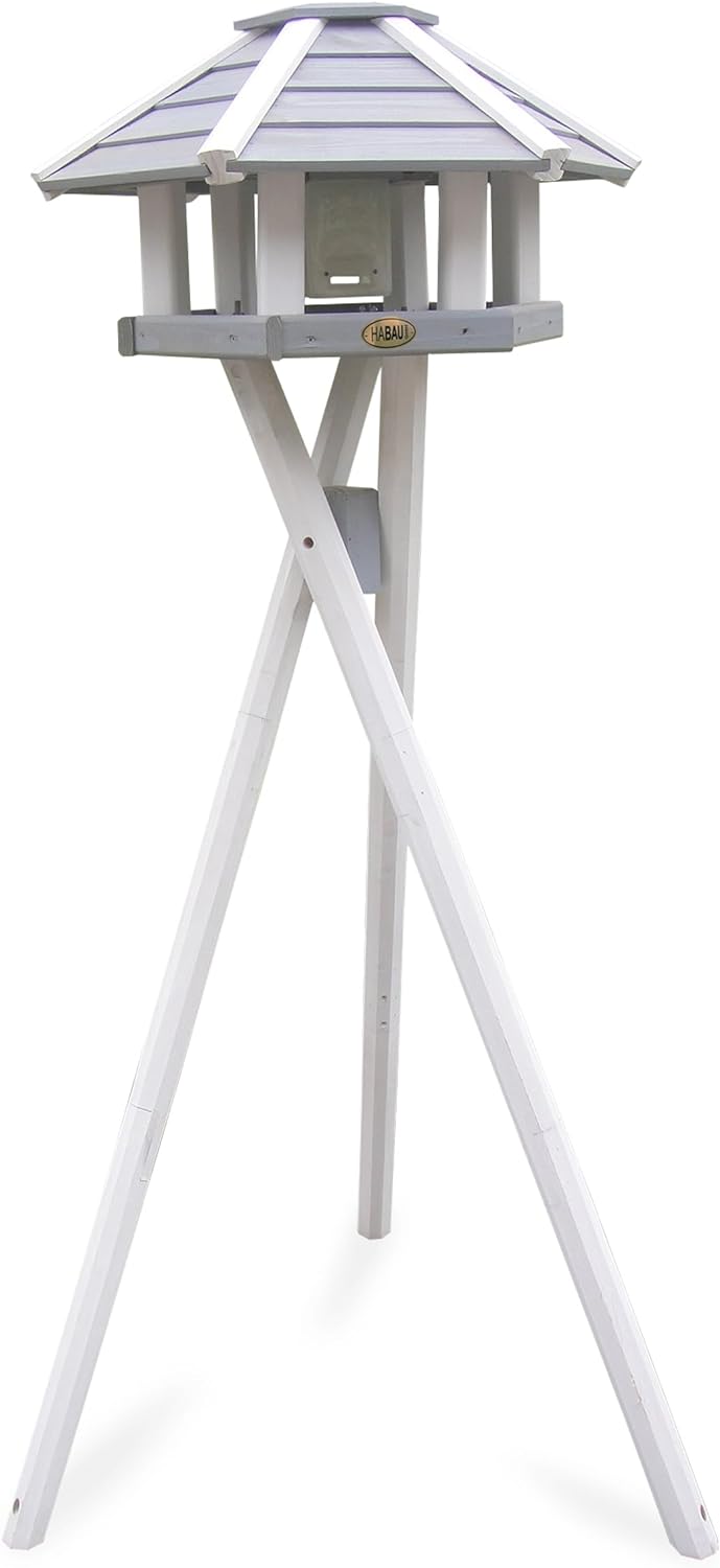 HABAU Vogelhaus Wandhänger aus Holz, grau/weiss - Futterstation mit Aufhängung