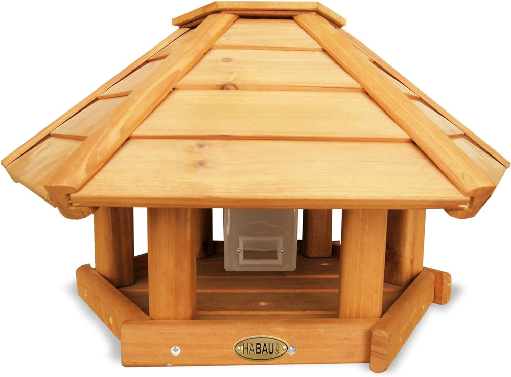 HABAU Vogelhaus Singdrossel aus Holz - Futterhaus zum Aufhängen mit Futtersilo