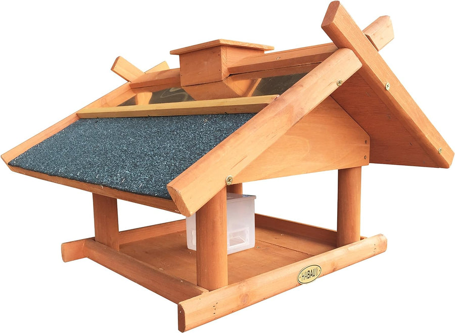 HABAU Vogelhaus Buchfink aus Holz - Futterhaus zum Aufhängen mit Futtersilo