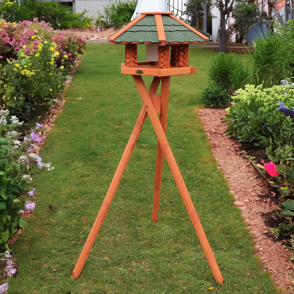 HABAU Vogelhaus Sperling mit Futtersilo und Ständer - Futterhaus komplett aus Holz