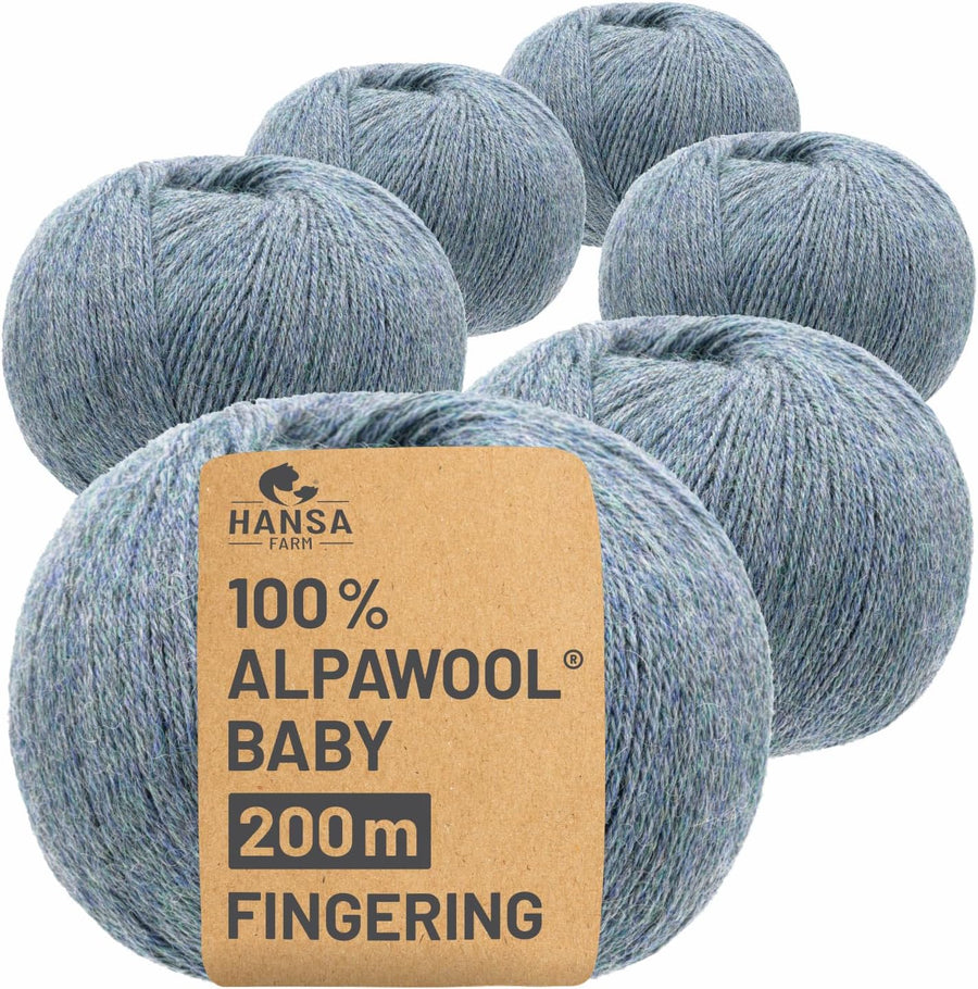 HANSA-FARM | Alpacare 100% waschbare Baby Alpakawolle in 25 Farben - 300 Set DK (6 x 50g) - Die 1. m
