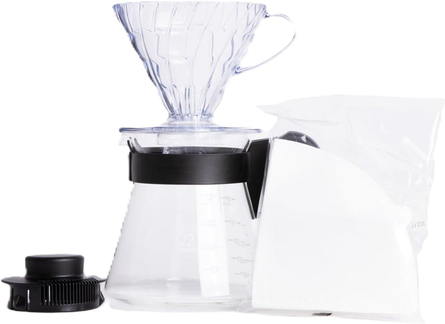 Hario V60 Brühset aus Glas, 600 ml, transparent, S-VGBK-02-T, Farblos 600ml Farblos, 600ml Farblos