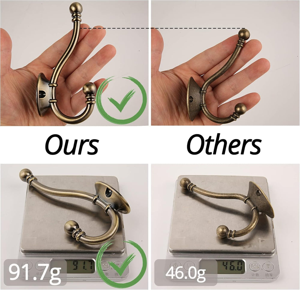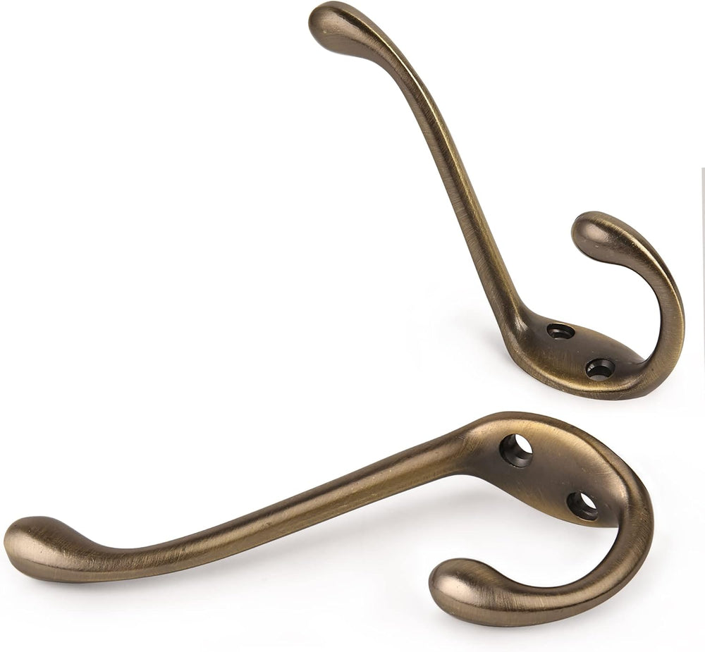 HASWARE 6 STÜCKE Doppelzinken-Kleiderhaken, Doppelmantelhaken mit 12 Schrauben, Antik-Wandhaken, Rob