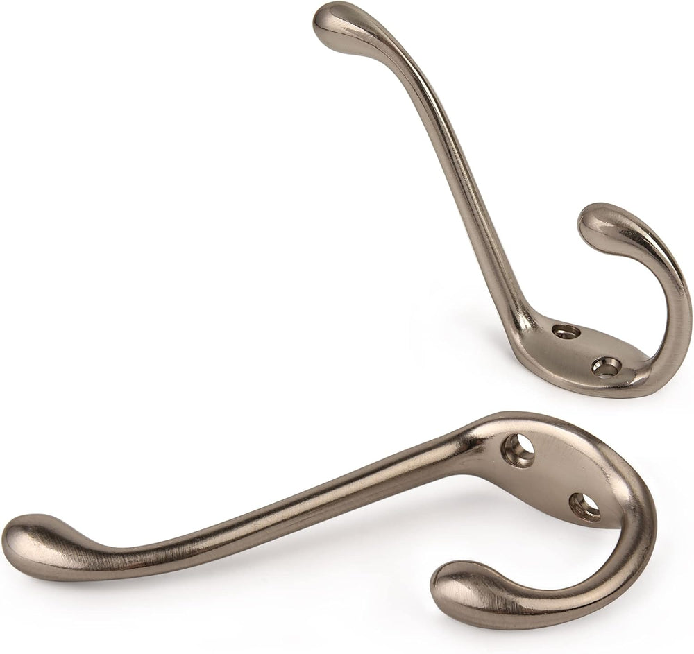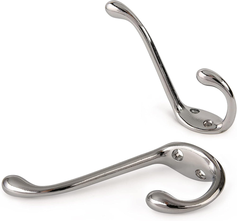 HASWARE 6 Stück Kleiderhaken mit zwei Zinken, grosse doppelte Kleiderhaken mit 12 Schrauben, an der