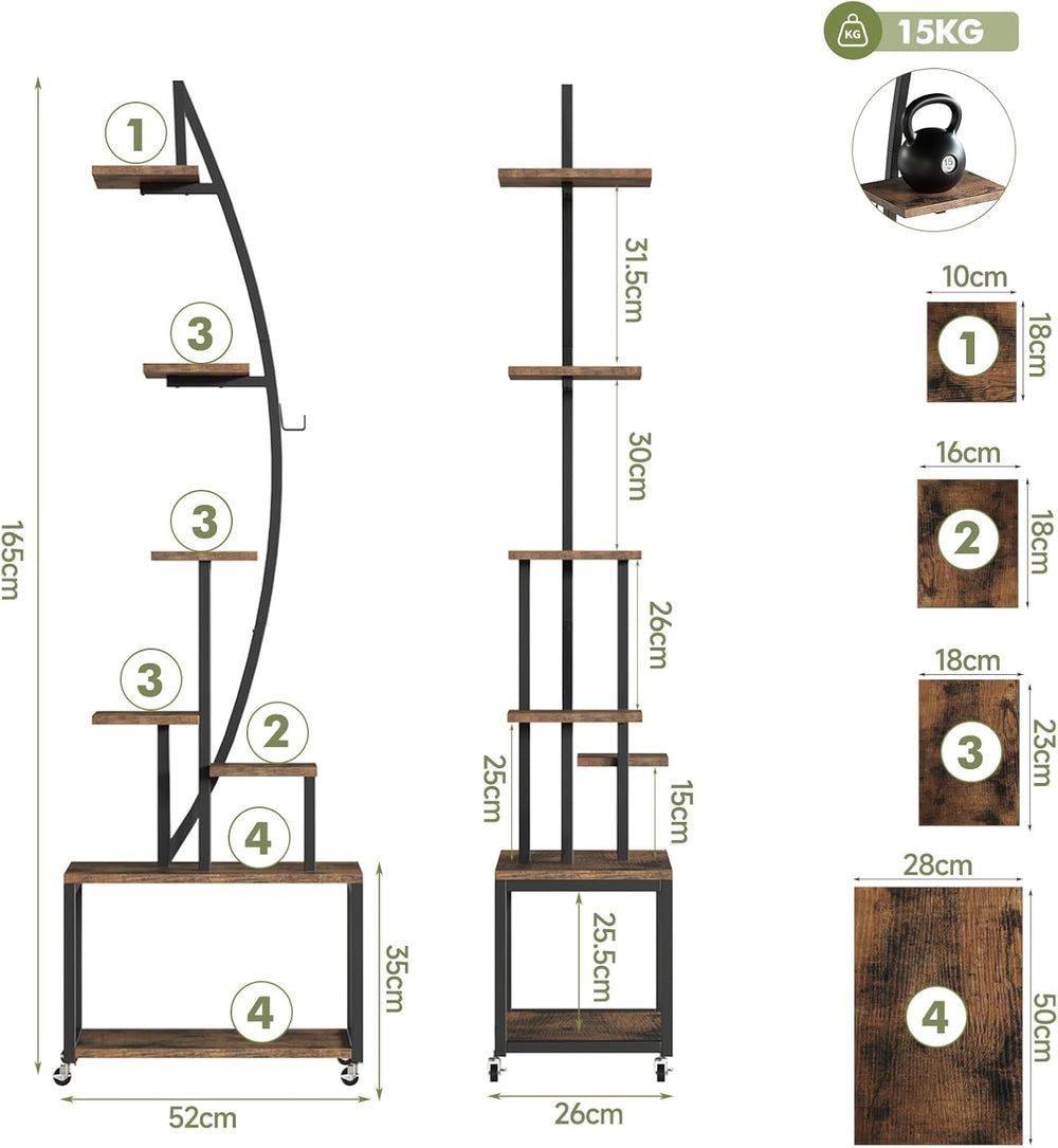 Pflanzenständer mit Wachstumslicht, Blumenständer 6 Stöckiges 125cm, Pflanzenregal Metall Holz mit F