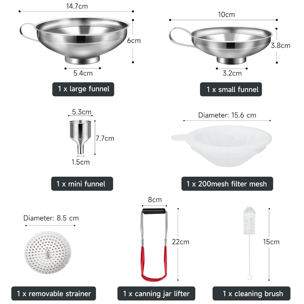 HAUSPROFI Trichter Edelstahl Set, 7 Stück Küche Marmeladentrichter, Einfülltrichter Einmachtrichter