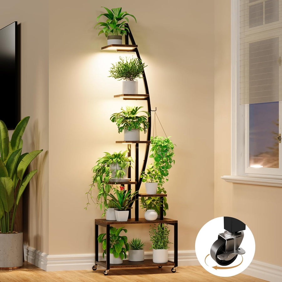 HAUSPROFI Pflanzenständer mit LED-Wachstumslicht (Warmweiss), Blumenständer 7 Ebenen 165cm, Pflanzen