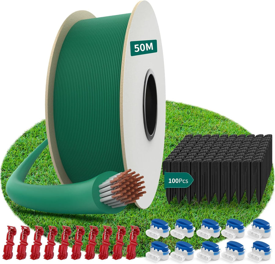 50M Universal Begrenzungskabel für Mähroboter + 100 Erdnägel + 10 Mähroboter Kabelverbinder + 10 Ans